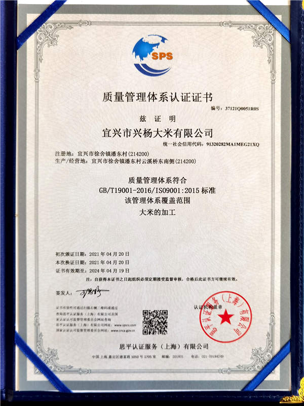 宜興市興楊大米有限公司坐落于江蘇宜興市徐舍鎮(zhèn),是一家集水稻種植、收購、加工、銷售與一體的江蘇無錫市農(nóng)業(yè)產(chǎn)業(yè)化龍頭企業(yè)。本公司多年被評(píng)為“無錫市放心糧油示范加工企業(yè)”,“江蘇省糧食經(jīng)營者守法誠信A級(jí)企業(yè)”等。2020年12月獲得“無錫好米”金獎(jiǎng)。注冊(cè)資本1200萬元,已具備年產(chǎn)5萬噸大米的加工能力。